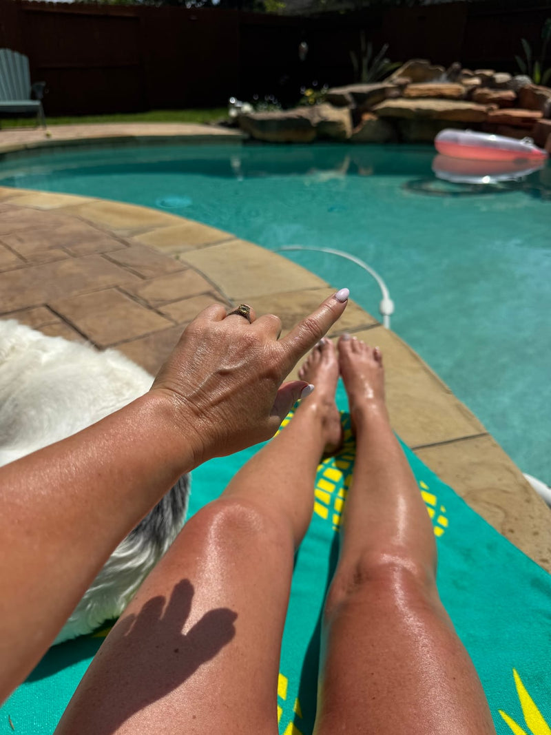 Smooth over the neck, chest, arms, and body using slow, upward motions until fully absorbed.